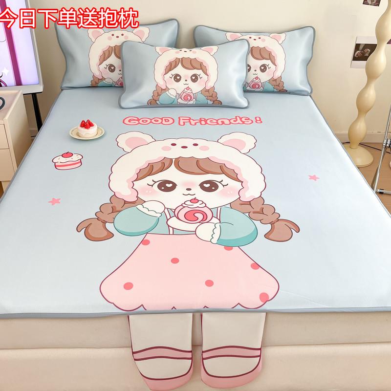 卡通夏季碳光冰丝席三件套可爱少女心儿童可机洗空调席单人宿舍席