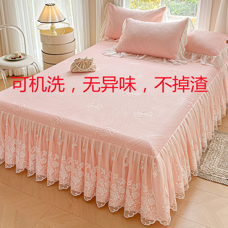 夏天冰丝乳胶凉席三件套床裙款高档蕾丝花边公主风可机洗空调软席