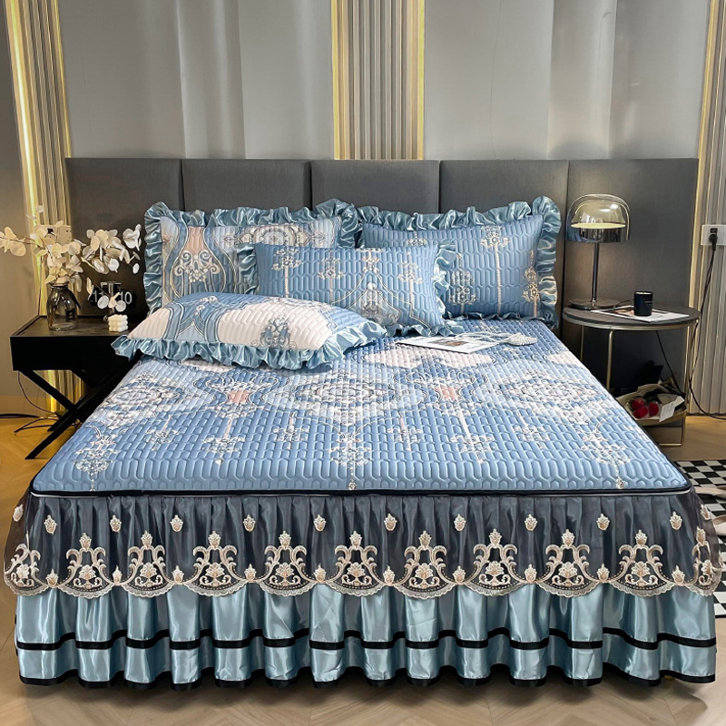 欧式高档乳胶凉席三件套床裙款夏天冰丝床罩可水洗折叠空调席夏季