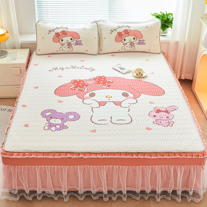 简约 小清新凉感丝乳胶p凉席1.5m1.8三件套卡通亲肤防滑空调软席