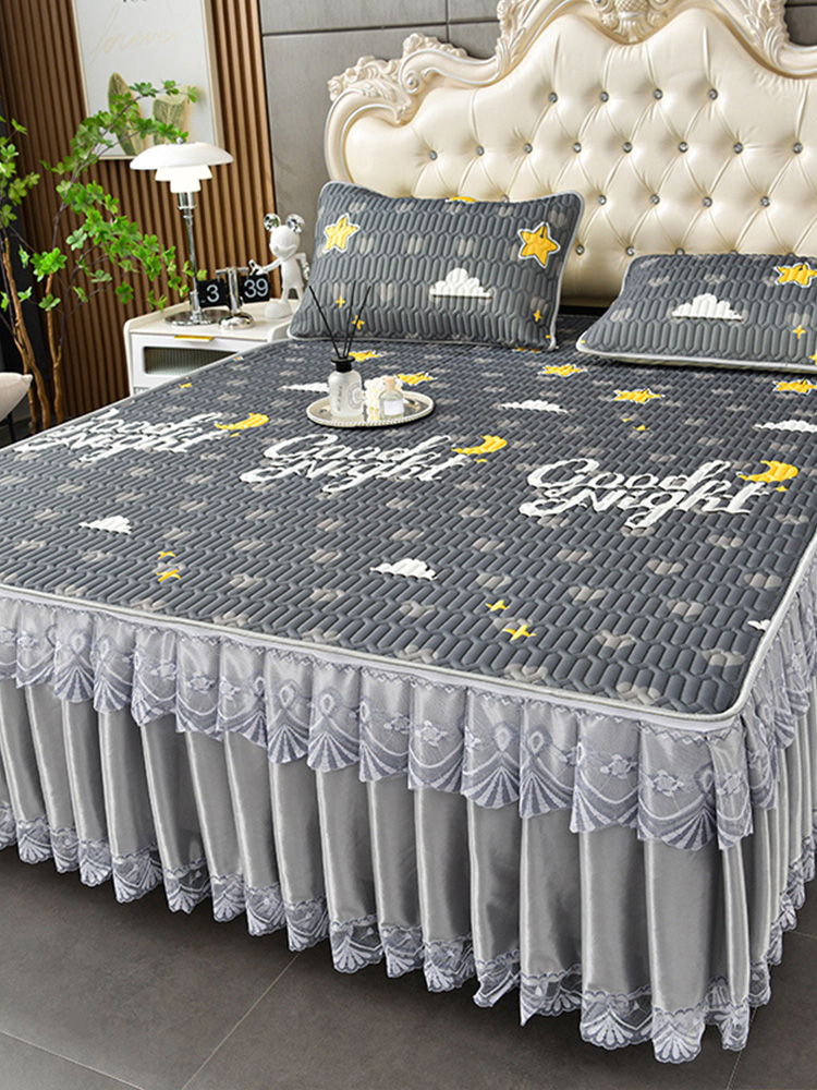 夏季乳胶凉席三件套床裙款空调软席加厚凉感丝床罩席子套件可机洗