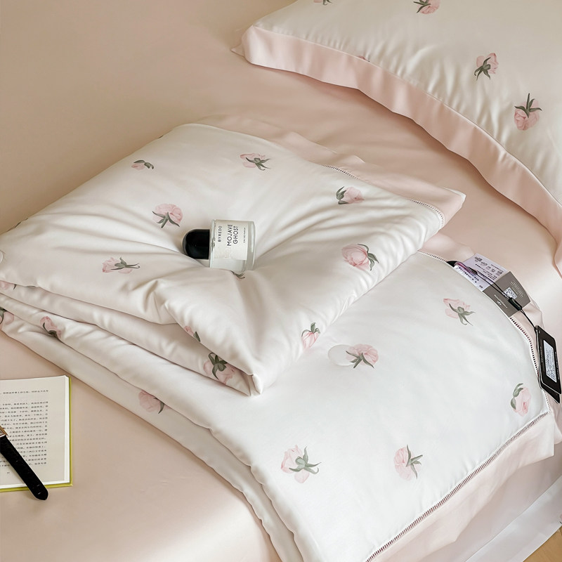 高端田园风100%天丝夏凉被四件套空调冰丝被子薄款可机洗夏被