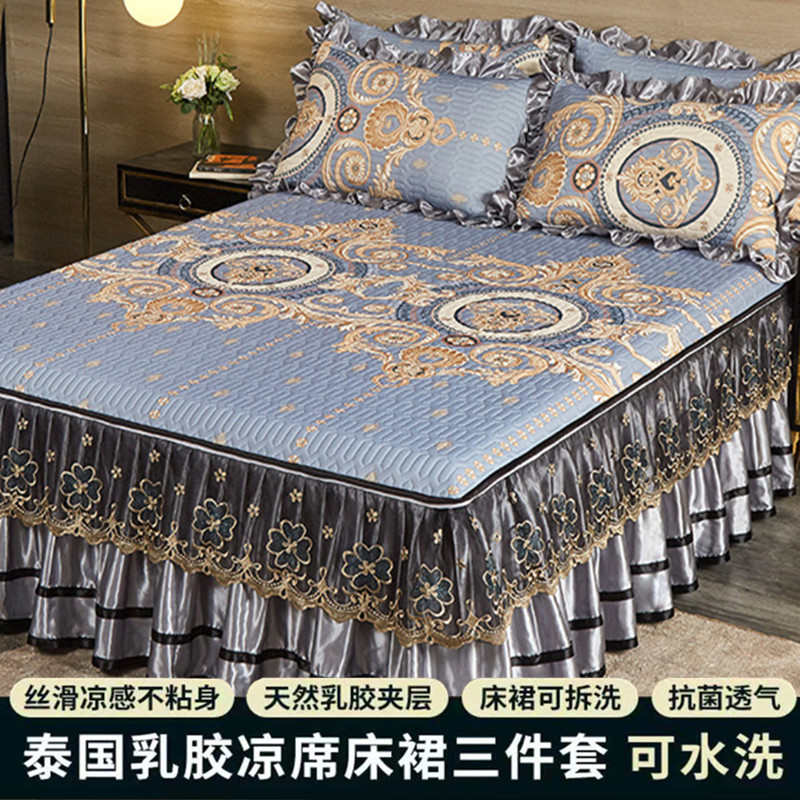 夏季空调冰丝乳胶凉席三件套可拆卸床裙罩凉席套件机洗水洗折叠席