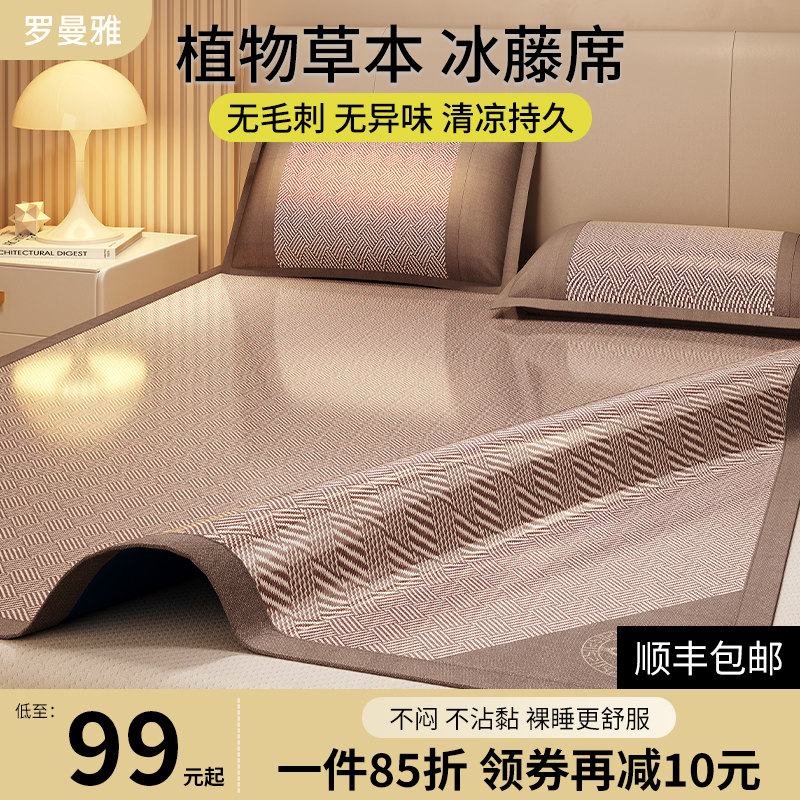 罗曼雅天然凉席冰丝凉席夏季2025新款家用可折叠空调水洗冰藤席子