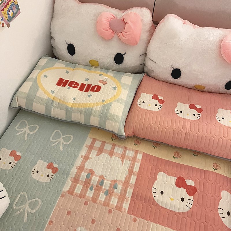 晚安猫可爱猫咪凉感丝乳胶凉席三件套少女心可水洗空调软席枕套