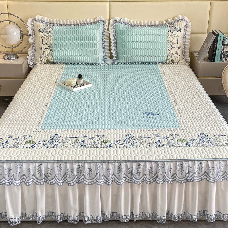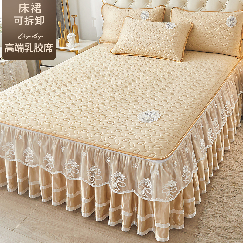 夏季天然乳胶席冰丝凉席三件可机洗可拆卸床裙床笠款两用空调席
