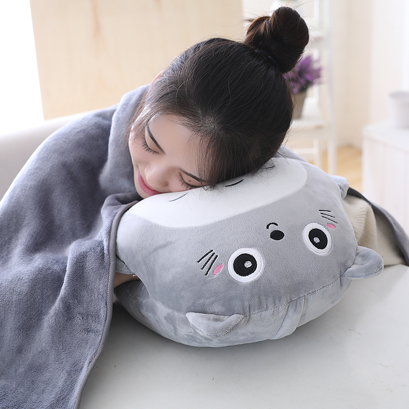 龙猫抱枕被子两用毯子暖手三x合一抱枕毯空调午睡枕汽车靠垫捂手