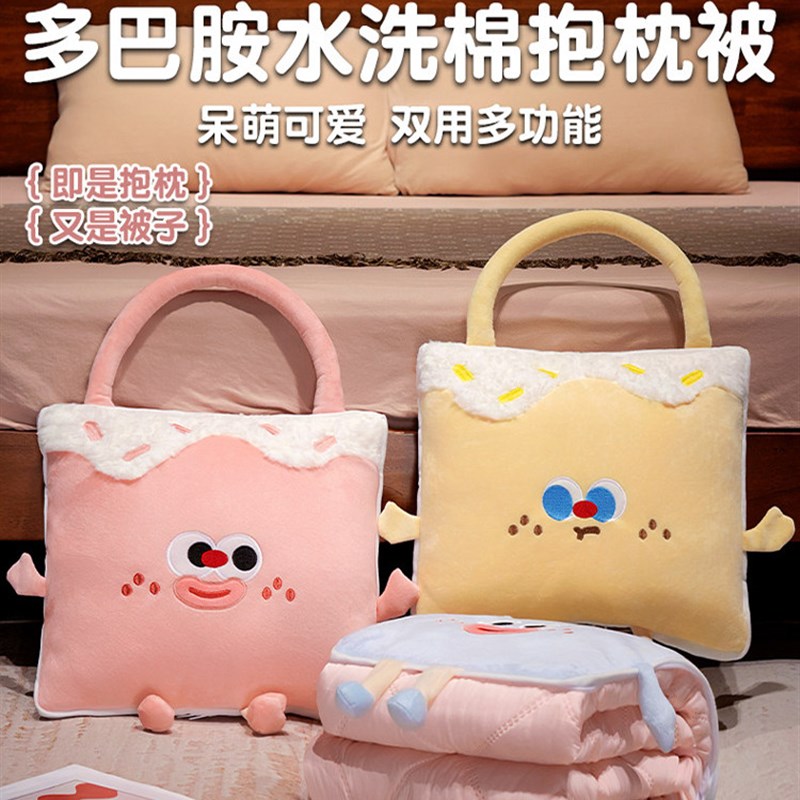 全棉卡通可折叠抱枕被子两用二合一车载靠枕办公室午睡纯棉空调被