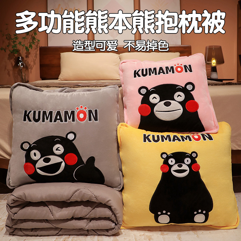 卡通熊本熊夏季天折叠抱枕被子两用办公H室午睡空调毯子二合一车