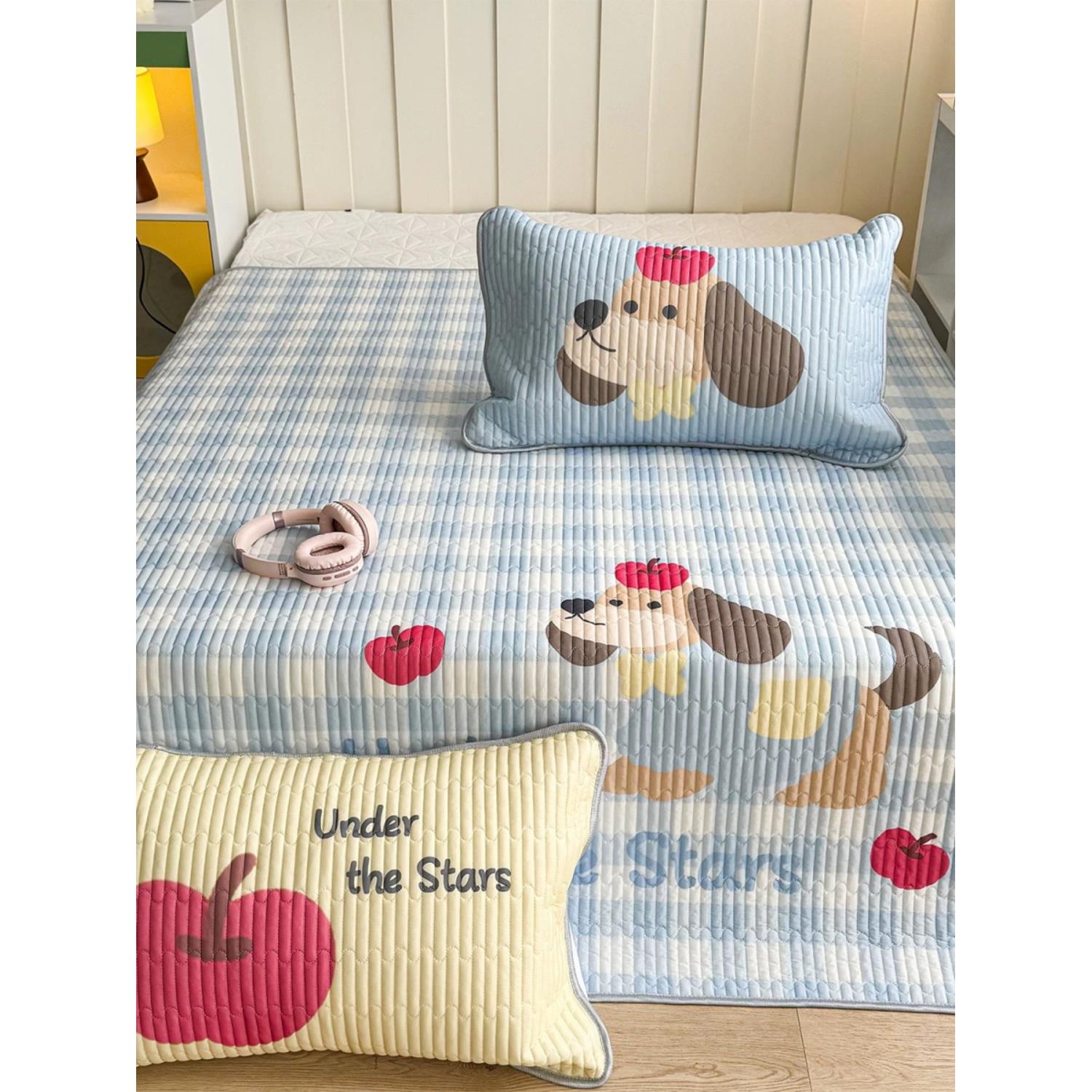定制可爱卡通乳胶凉席三件套儿童宿舍夏季凉感冰丝可机洗空调软席