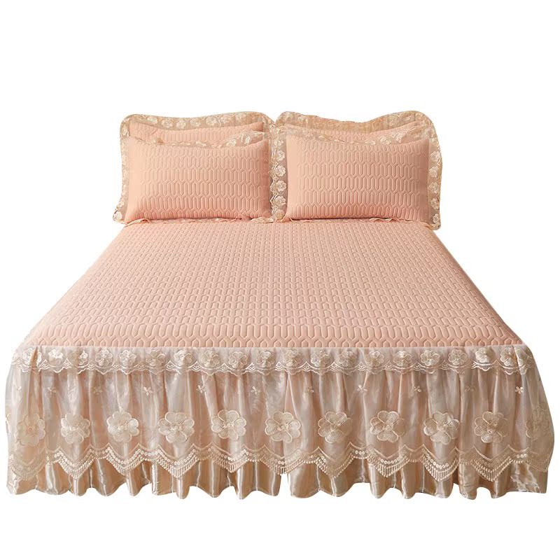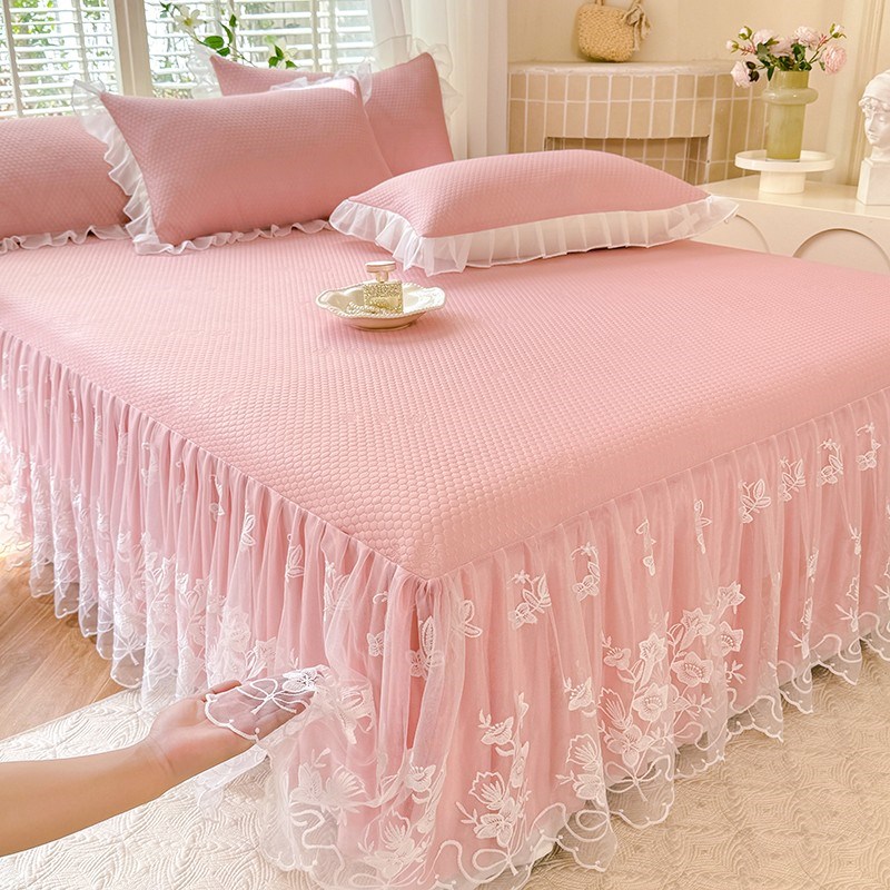 公主风花边床裙款冰豆豆凉席夏季床单带裙边空调软V席夏凉被四件