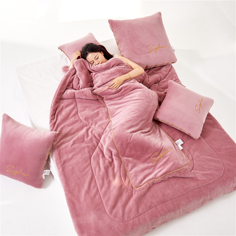 牛奶绒加厚e抱枕被子两用车载靠垫珊瑚绒毯子办公室午休空调被枕