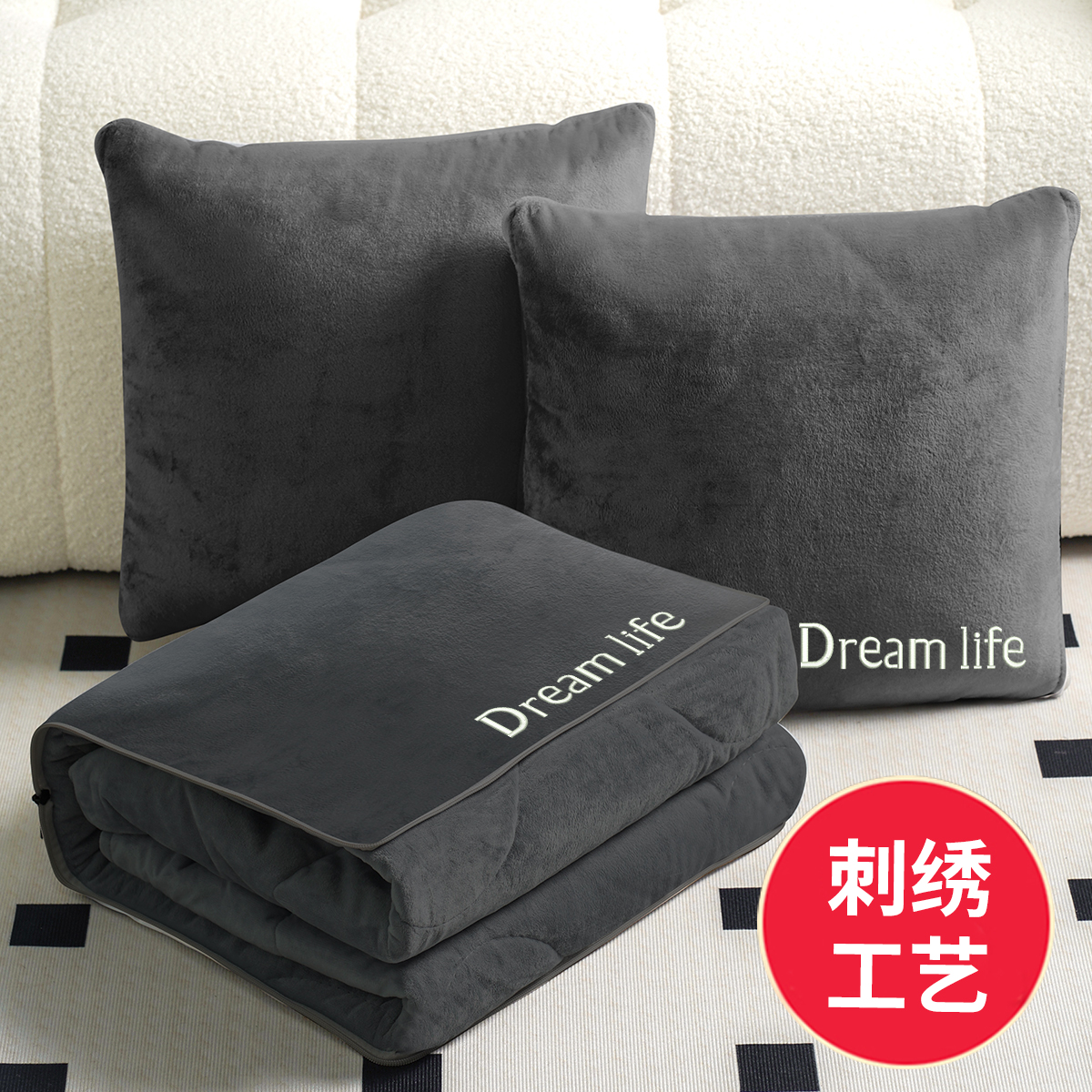 珊瑚绒抱枕被g子两用高级感可定制刺绣办公室午睡靠枕空调被冬季