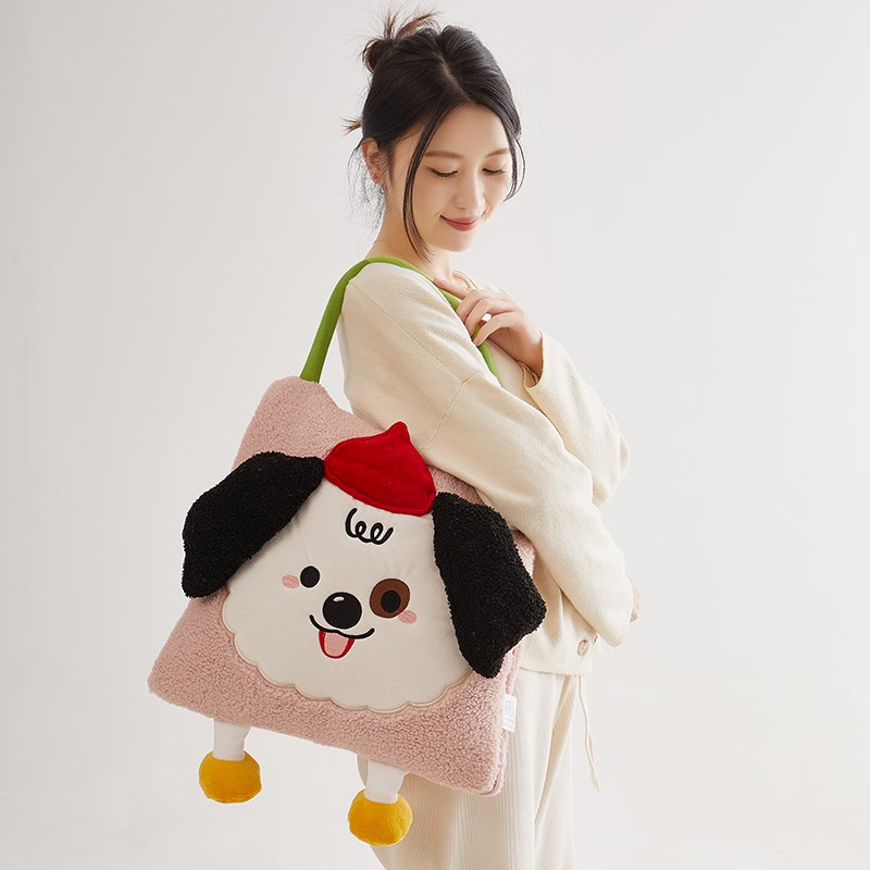 手提卡通狗抱枕被子两用学生宿舍午睡空调毯女孩生日礼办公室靠垫
