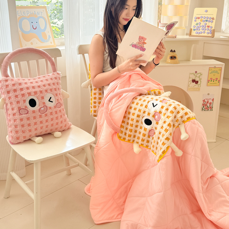 网红多巴胺手拎抱枕被子两用汽车靠E垫二合一办公室午睡毯子空调