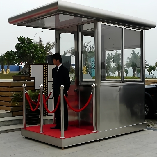 不锈钢站台岗亭带飘檐防水防雨保安亭门卫站岗亭保温岗亭可带空调