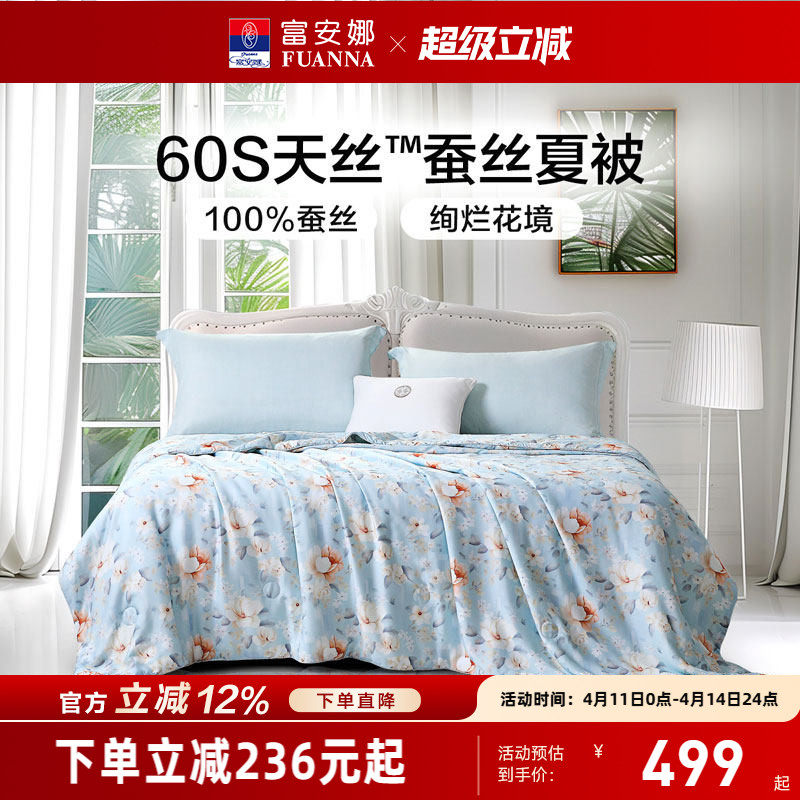 富安娜60S天丝被子夏被100蚕丝莱赛尔空调被夏季被芯单双人夏凉被