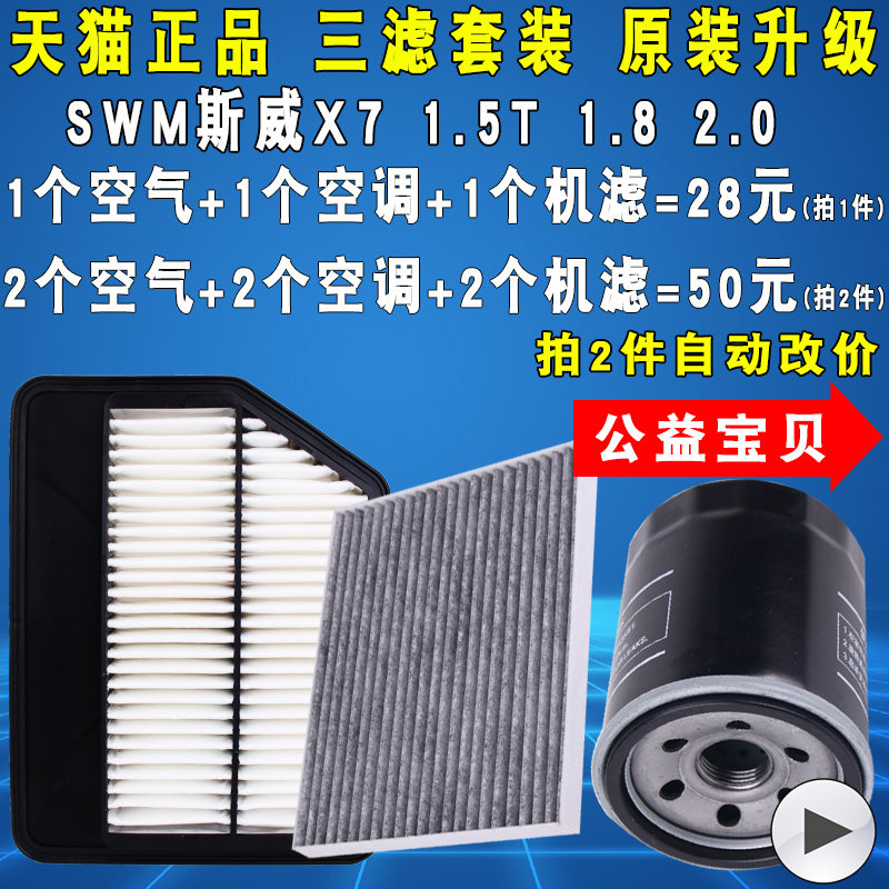 适配SWM斯威X7空气滤芯空调 三滤 机油滤清器格1.5T 1.8 2.0 原厂