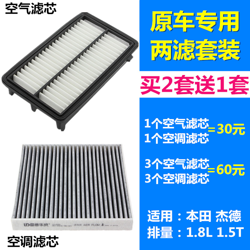 适配 本田 杰德 1.8 1.5T 空气滤芯+空调滤芯格滤清器空滤 两滤