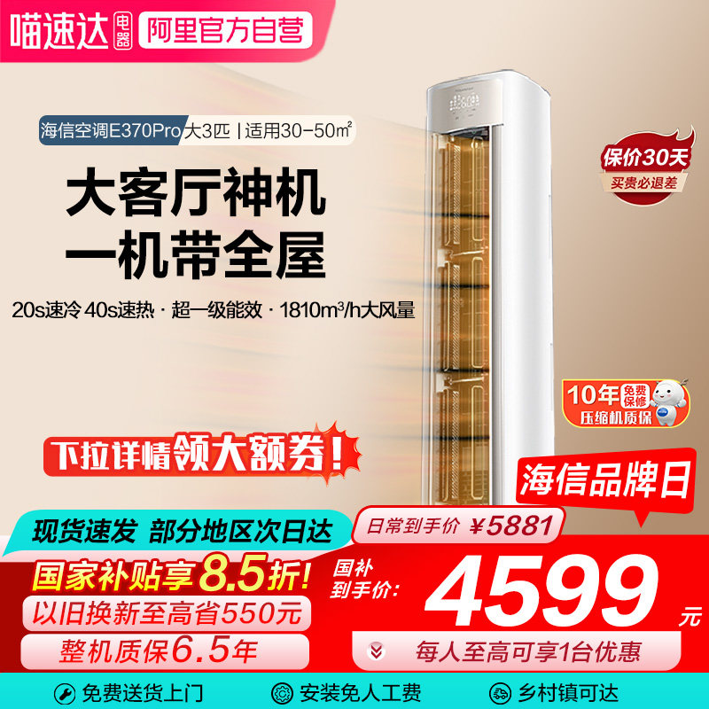 海信空调ProE370大3匹一级变频家用客厅立72柜机以旧换新省电101