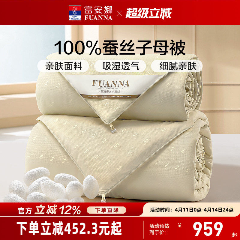 富安娜蚕丝被冬被春秋被空调被二合一被芯结婚喜被四季通用子母被