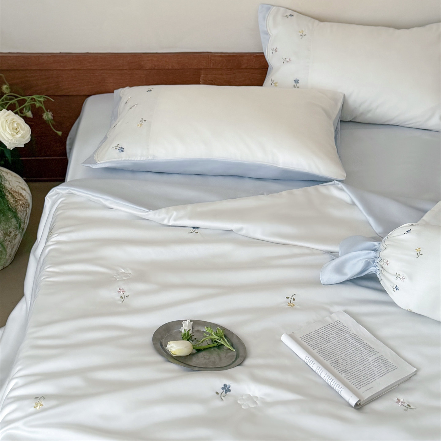 温柔清新田园小碎花刺绣60支兰精天丝夏被四件套 |简约凉感空调被