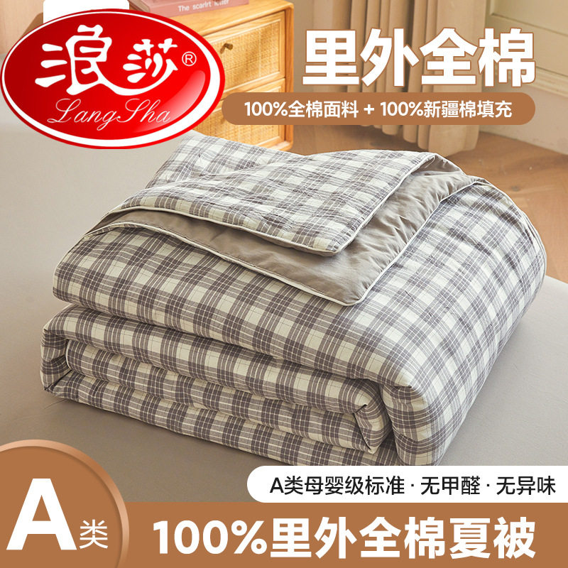 浪莎2026新款全棉夏凉被纯棉空调被四件套可机洗薄被夏季凉感被子