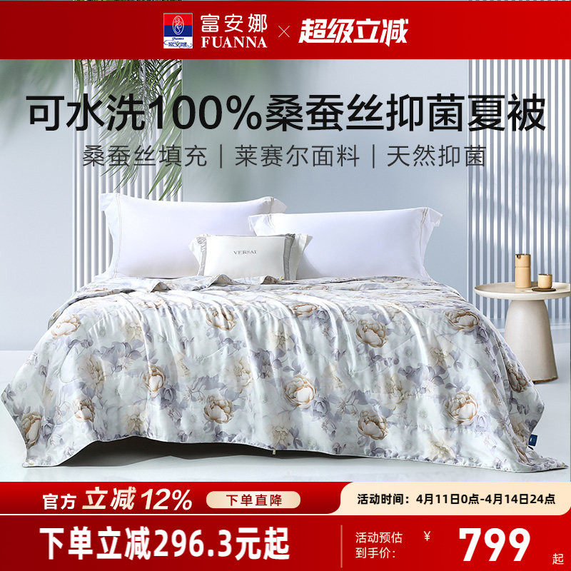 富安娜被子桑蚕丝空调被天丝莱赛尔被芯春秋被褥夏季可水洗夏凉被
