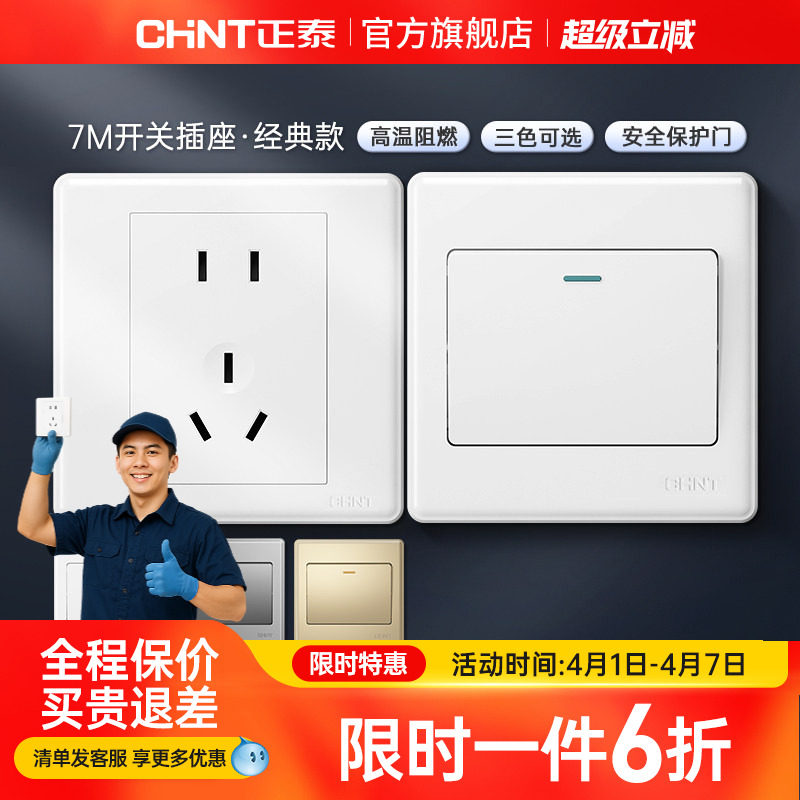 正泰旗舰店家用86型10a暗装墙壁空调16a一开五孔插座面板开关白7m