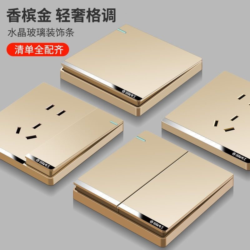 国际电工奶油白玻璃镜面开关插座面板16a空调3孔暗装一开双控五孔