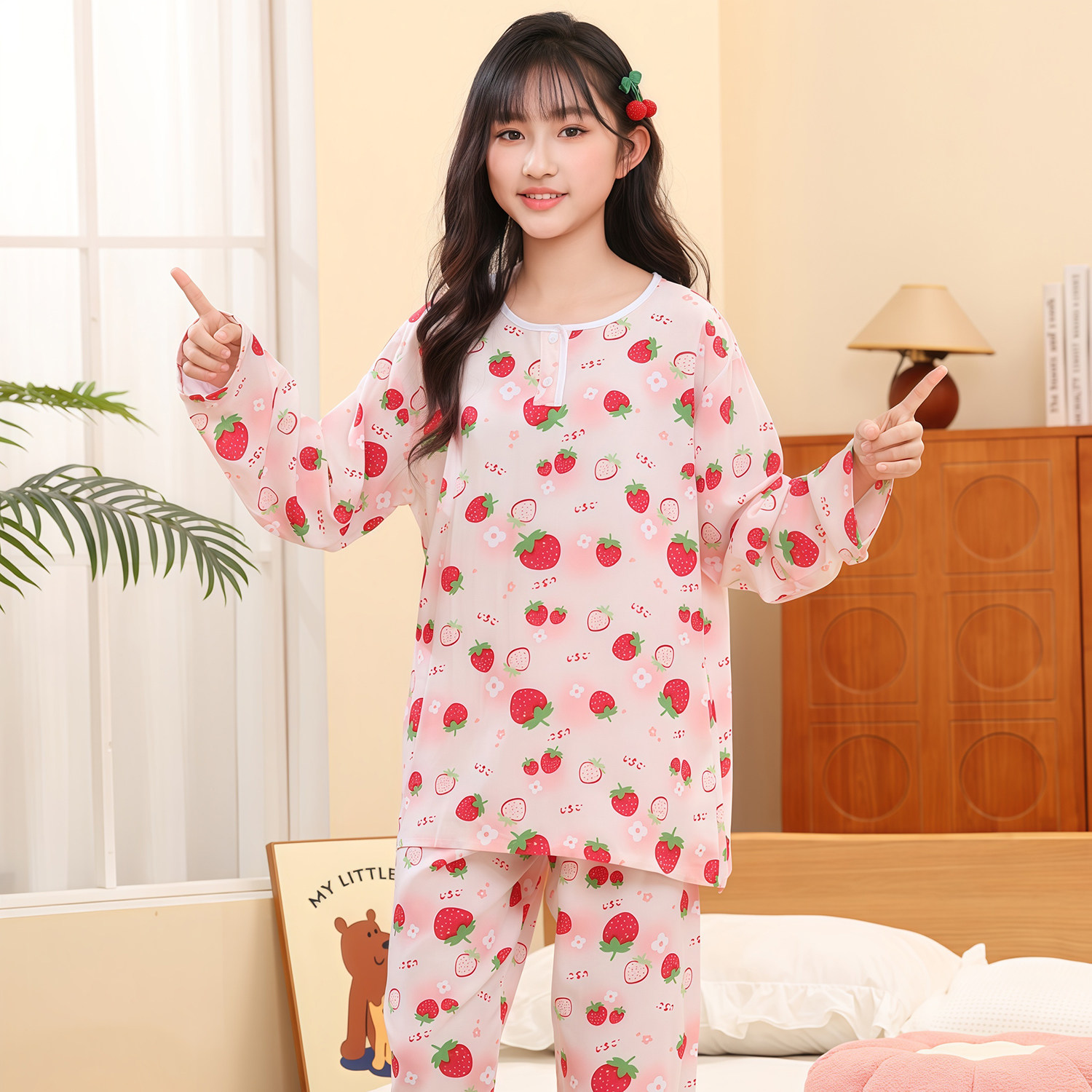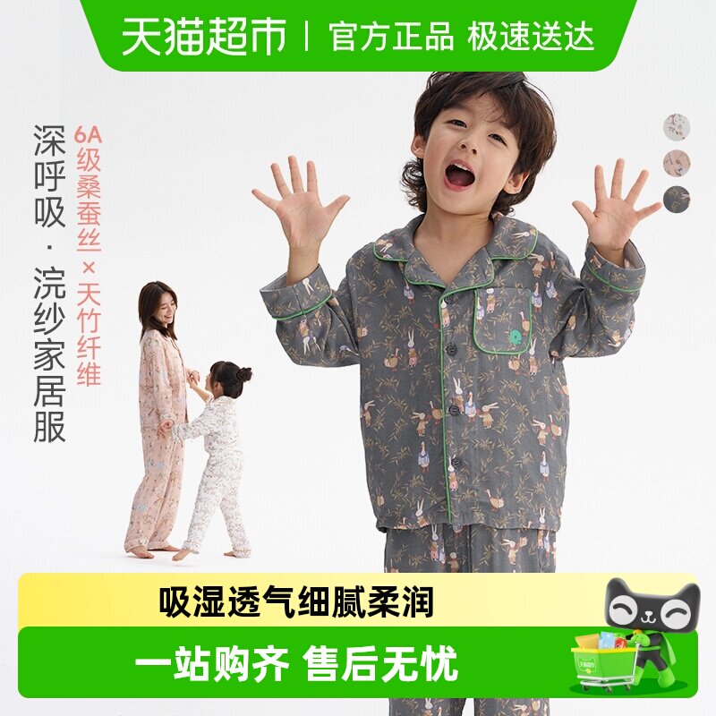 Q21浣纱系列儿童家居服亲子睡衣套装竹纤维蚕丝纱布儿童空调睡衣