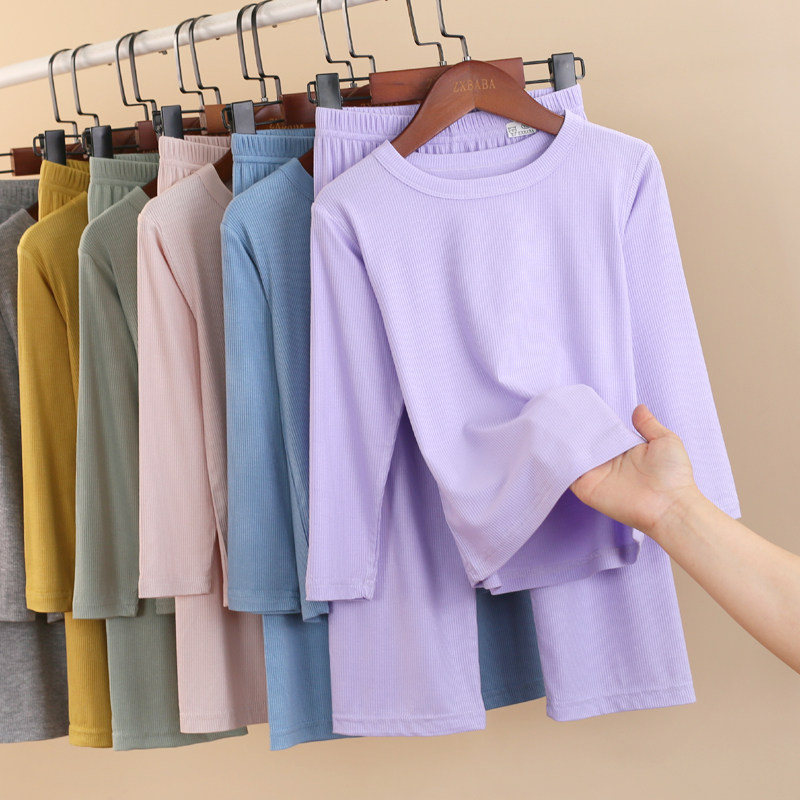 儿童春夏薄螺纹家居服套装男女童长袖睡衣睡裤空调服再生纤维秋衣