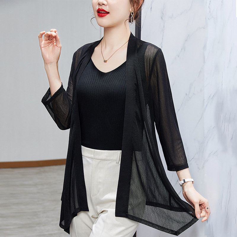 轻薄纱防晒衫女夏新款九分袖开衫外搭女中长款空调衫披肩防晒衣