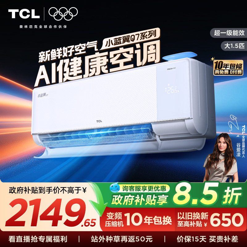 【政府补贴】TCL新风空调大1.5匹新一级小蓝翼Q7冷暖柔风挂机变频