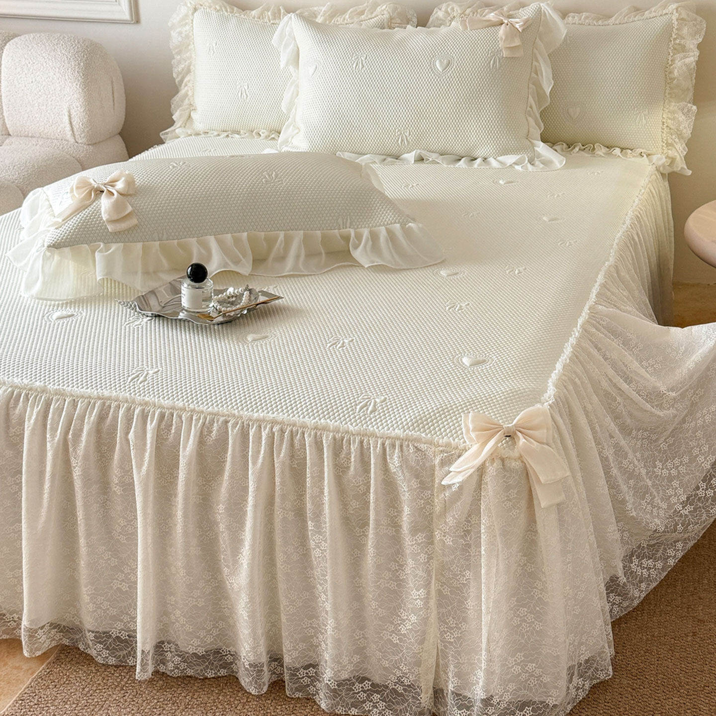 蕾丝公主风冰豆豆冰丝凉席三件套床裙款夏天空调席软席床罩1.8米2