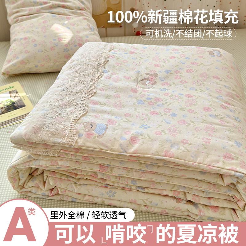 2026新款全棉花边款空调可机洗纯棉夏凉被棉花夏被薄被芯四季被