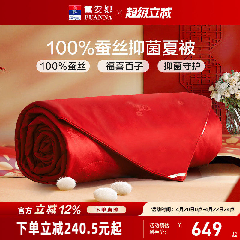 富安娜蚕丝被芯结婚喜庆大红夏被四季春秋被子婚庆空调被新婚喜被