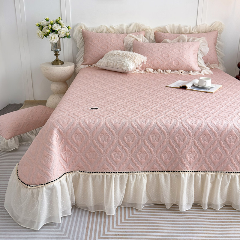 凉感夏季凉席三件套冰丝提花空调豆豆软席床盖裙式提花席子可机洗