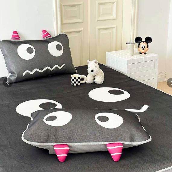 新款直销ins黑色小怪兽冰丝藤席可机洗夏凉席三件套空调席子床笠1