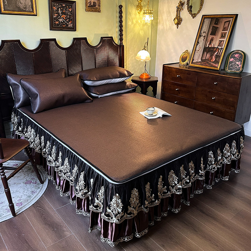 夏季可拆卸藤席床裙三件套夏天凉席床罩空调屋防滑冰丝席折叠软席