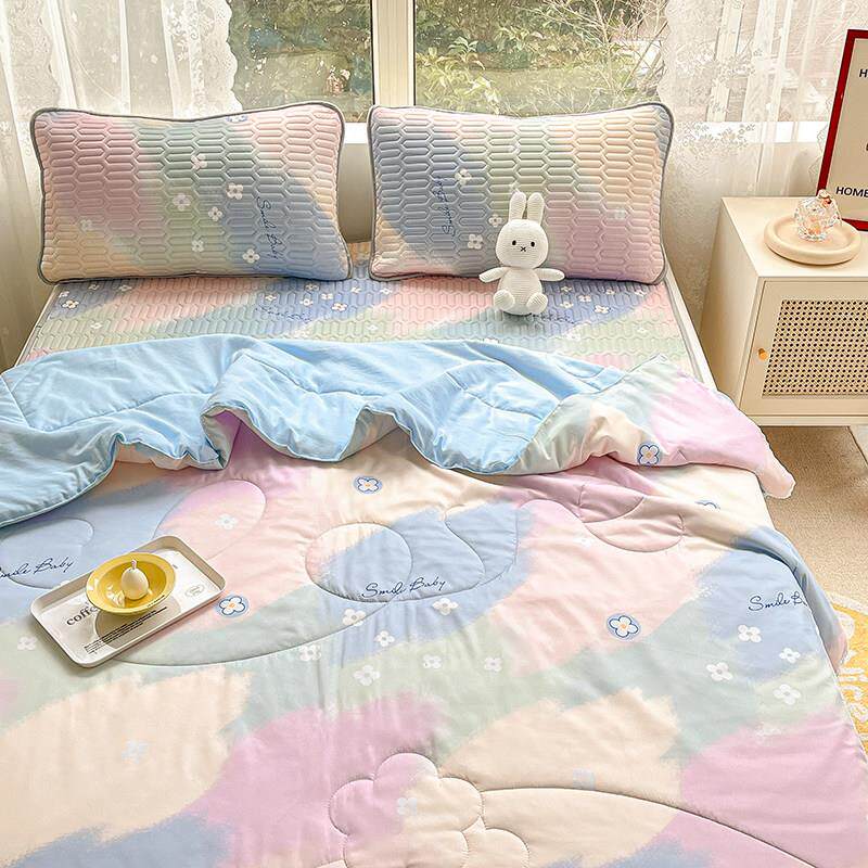 新款乳胶凉席三件套夏季冰丝凉席空调席小清新凉席夏被四件套