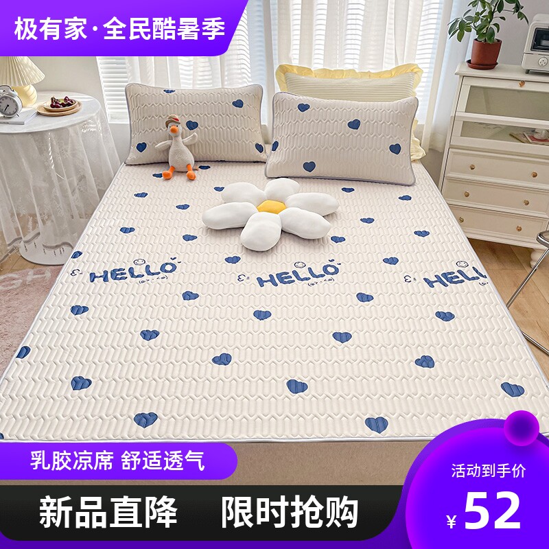 乳胶凉席三件套家用空调席双人床夏季软凉席小清新乳胶色冰丝席