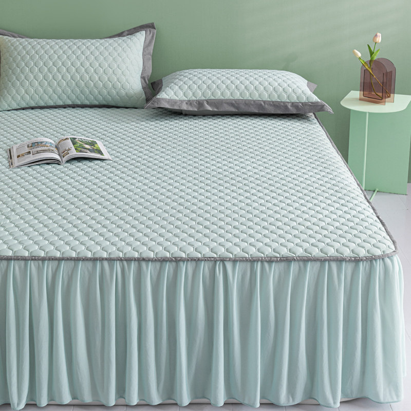 乳胶凉席三件套夏季可水洗冰丝席子纯色I床裙款可折叠床笠空调软