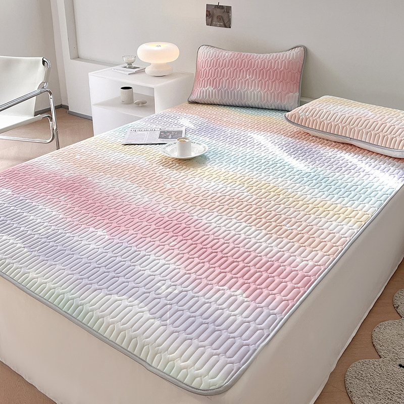 2025新款渐变彩虹夏季乳胶凉席三件套冰丝空调软席子凉感宿舍儿童