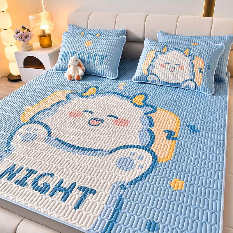 一触即凉进口冰丝高端硅胶空调席可机洗防刮划天然乳胶凉席三件套