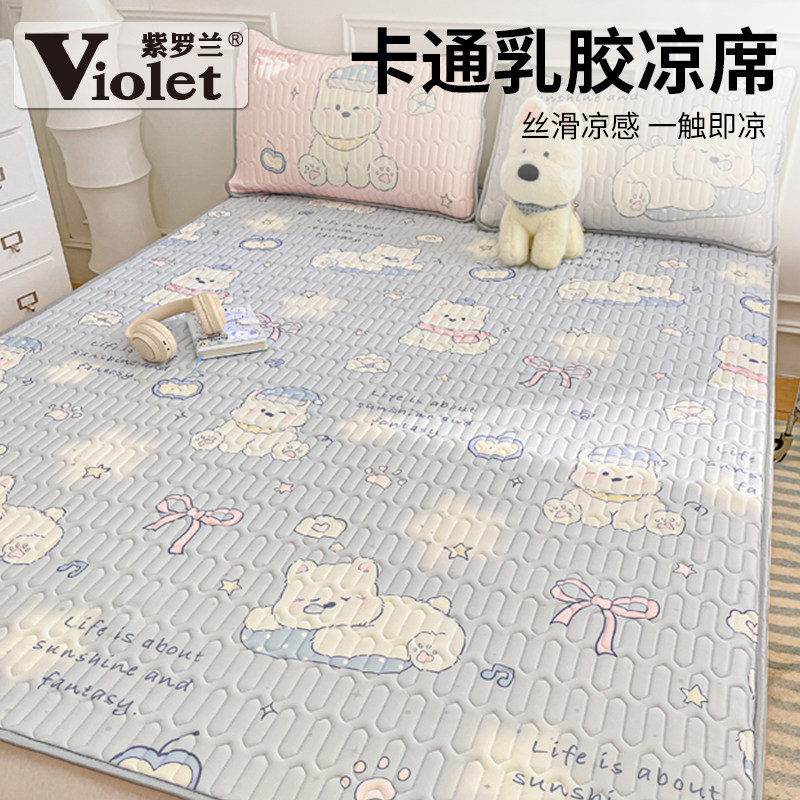 紫罗兰数码印花小清新乳胶凉席三件套可机洗凉感丝学生夏凉空调席