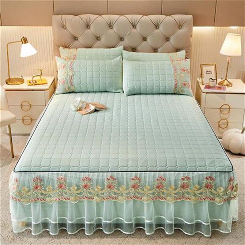 乳胶凉席三件套床裙款夏季小清新1.8m床冰丝空调软席子可机洗折叠