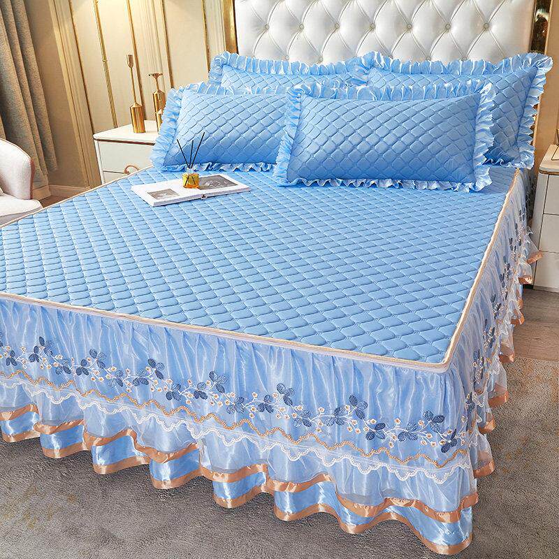 夏季空调冰丝乳胶凉席三件套可拆卸床裙款床罩软席子可水洗折叠席
