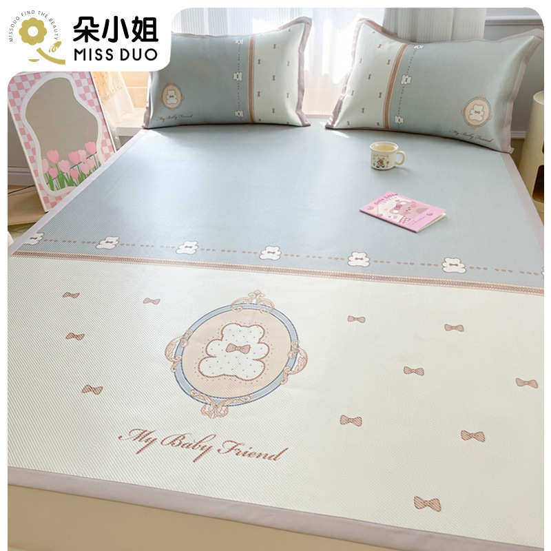 季冰丝床凉席三件夏套卡通印花单可121水洗天机洗空调夏席藤席软