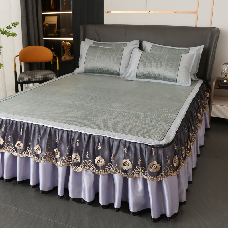 夏季公主风提花冰藤席床裙款凉席床罩空调席子夏天用可拆卸可折叠